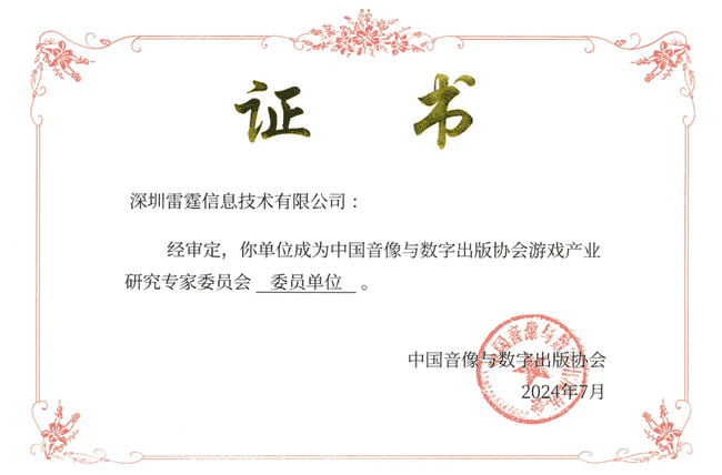 2024年7月25日,,中国音像与数字出版协会游戏产业研究专家委员会(以下简称“中国音数协游戏专委会”)成立大会在上海市召开,,,,厦门918.com网络技术股份有限公司及其子公司深圳雷霆信息技术有限公司(以下统称“公司”)正式成为中国音数协游戏专委会委员单位。。。